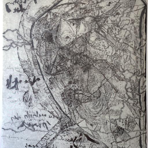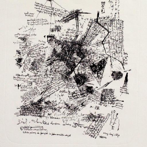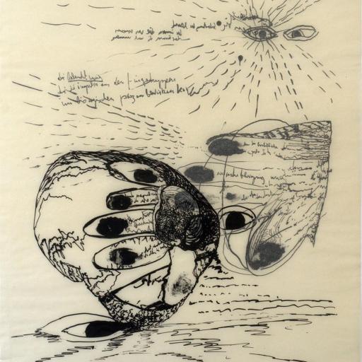 ab 1961 Arbeit an doppelseitigen, transparenten Textzeichnungen, Erkundungen der unterschiedlichen Arbeit der rechten und der linken Gehirnhälfte und der unterschiedlichen Arbeit der rechten und der linken Hand